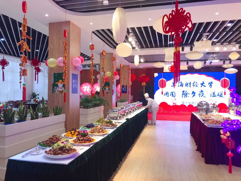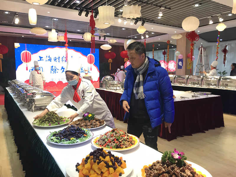 上海财经大学除夕夜学生团圆饭在国定路校区举行。校党委书记许涛、副校长方华、党委副书记朱鸣雄、相关职能部门负责人与留校学生共庆佳节。上海财经大学党委书记许涛在致辞中表示:后勤员工竭尽全力为大家营造温馨和谐的校园环境,烹饪家乡味道,上财就是你们的家。希望大家共享这顿温馨又难忘的团圆饭,喜迎农历新年。品尝家的味道,吃出幸福味儿。