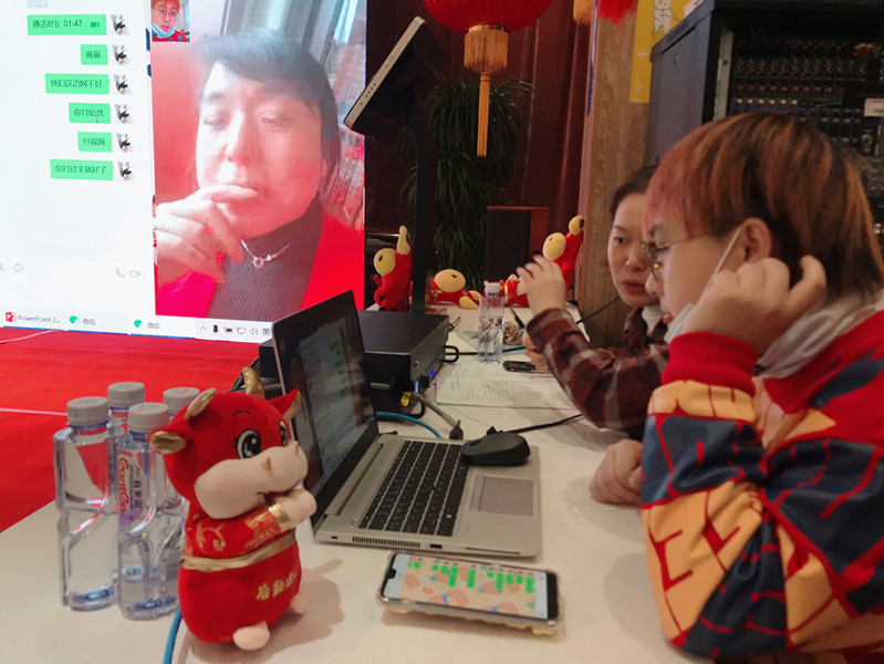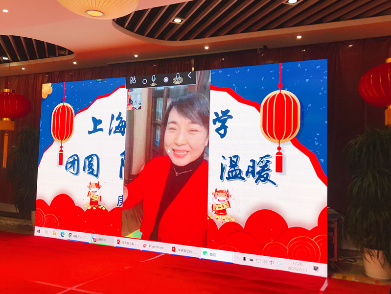 通过LED大屏幕视频连线,小财萌和远在家乡的父母拜年,分享着这顿团圆饭的温暖点滴,心在一起,便是团圆。