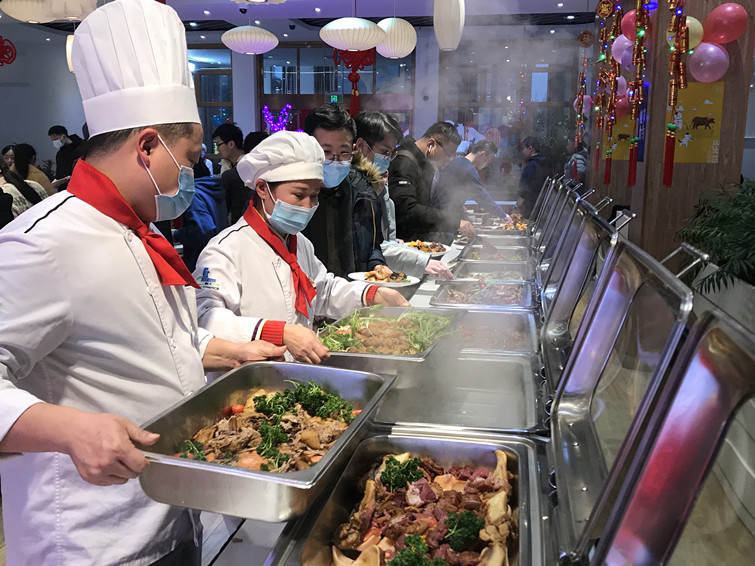 后勤中心餐饮部精心装点着餐厅的各个角落,让过年的气氛更浓郁。上财后勤中心厨师团队用忙碌体会着付出的满足感,用爱汇聚出色香味俱全的别样年味,由约30道菜品组成的自助式团圆饭,让小萌财们尝出了家的味道,除夕的这顿团圆饭承载着辞旧迎新的“使命”,乡愁略减,年味十足。