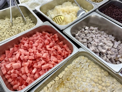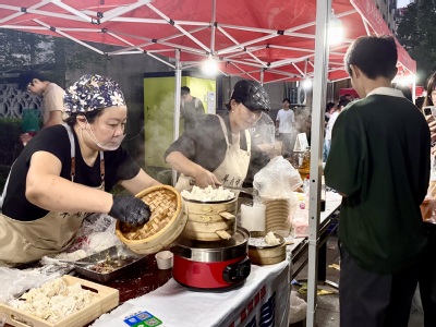 一场穿梭于神州风味的舌尖旅行在此展开:从西北边疆的烤羊排、新疆奶茶,到东北土地的酱香大骨;从陕西的凉皮、肉夹馍,到重庆的桃桃肥肠;从福建的四果汤、泉州炸醋肉,到宝岛台湾的麻薯与蚵仔煎……天南地北的家乡味,在此刻的上财夜市奇妙交汇。炭火缭绕的羊肉串、铁板滋滋的鱿鱼年糕、金黄酥脆的旋风土豆,更有沁凉解腻的芒果冰豆花、话梅柠檬茶,为火热夜市注入一抹清新活力。